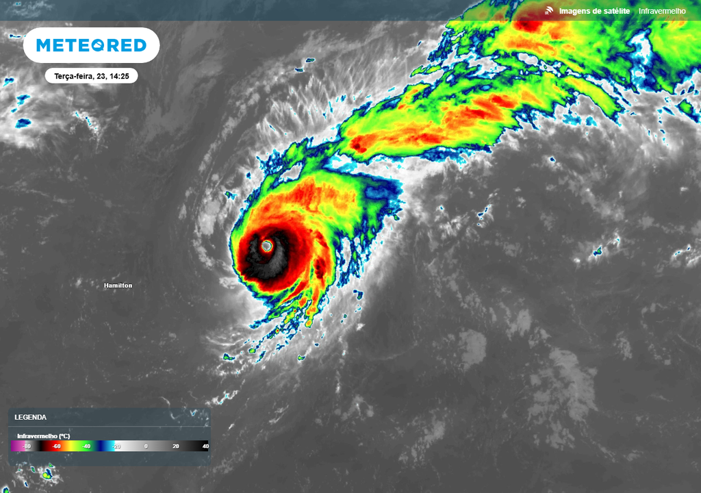 Na mais recente atualização do modelo ECMWF o poderoso furacão Gabrielle de categoria 4 situava-se cerca de 2640 km a oes-sudoeste do Grupo Ocidental dos Açores, apresentando uma pressão mínima central de 949 hPa à medida que se deslocava para nordeste. Nas próximas horas ‘rodopiará’ para leste, tomando a direção prevista para os Açores.