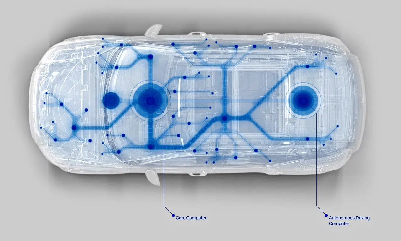 O Volvo EX90 tem cinco câmaras, 16 sensores ultrassónicos e um radar LiDAR (tecnologia laser) capaz de ver até 250 metros de distância faça chuva ou faça sol. Portanto, com tantos dados para serem tratados, capacidade de processamento nunca será demais.