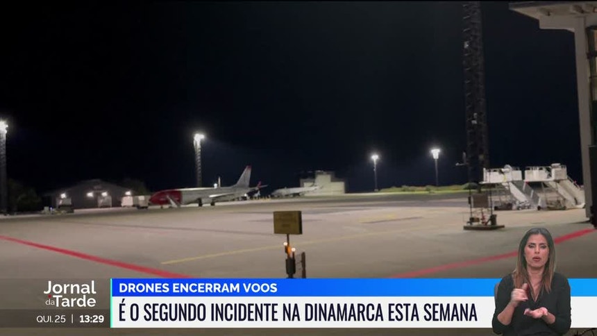 O aeroporto de Billund, o segundo maior da Dinamarca, esteve encerrado durante uma hora, e o de Aalborg, utilizado para voos comerciais e militares, esteve encerrado durante três horas devido a incursões de drones na noite de quarta-feira, revelou a polícia dinamarquesa.