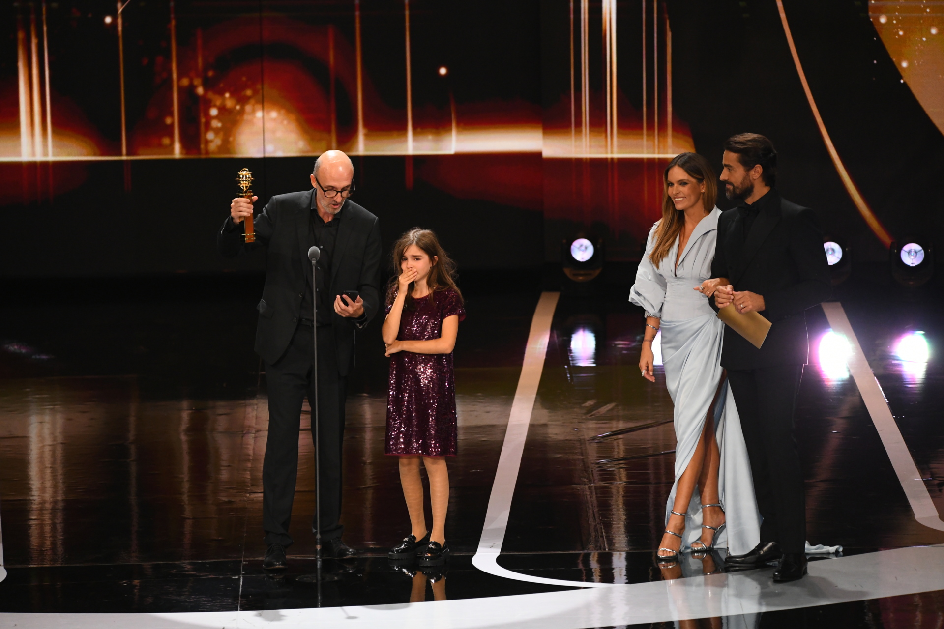O tom solidário prolongou-se nos discursos. Além do apelo de Joana Santos, João Pedro Vaz, premiado como Melhor Ator de Cinema, subiu ao palco com a filha e saudou todos os nomeados, afirmando: “Fazer cinema em Portugal é um milagre.”