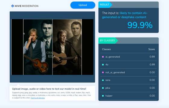 Além disto, as duas imagens que acompanham a publicação (dando a entender que teriam sido captadas durante o concerto), foram criadas com recurso à inteligência artificial. De acordo com o site Hive Moderation, há 99,9% de probabilidades de estas serem imagens falsas.