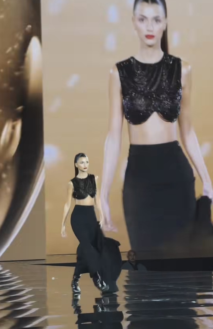 A jovem modelo partilhou a passarela com um elenco de luxo: Jane Fonda, Helen Mirren, Viola Davis, Andie MacDowell, Eva Longoria, Kendall Jenner, Cindy Bruna, Aishwarya Rai, a espanhola Ana Milán e a atriz Ariana Greenblatt, entre outras. Juntas deram corpo ao lema “Liberté, Égalité, Sororité”, transformando a moda num manifesto global de inclusão.