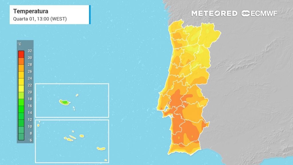 Na terça-feira as condições mantêm-se semelhantes, com subida ligeira das temperaturas que se aproximam dos 30 ºC em várias regiões do interior e do Sul. Quarta-feira deverá ser o dia mais quente da semana, com máximas acima dos 30 ºC em muitos locais, designadamente no Vale do Tejo.