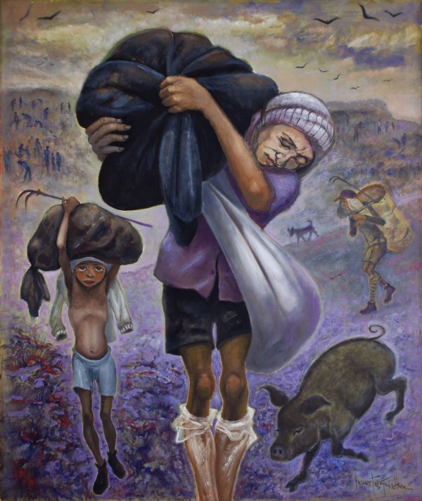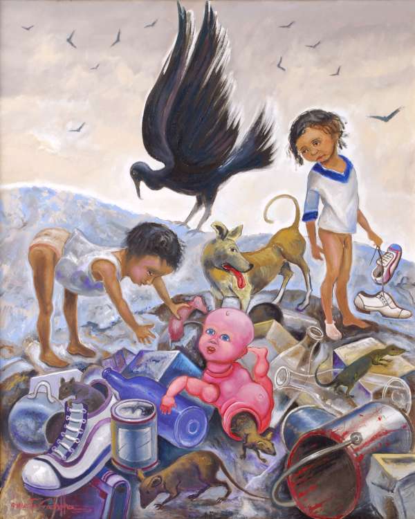 “Se eu fosse pintor, não pintaria o pôr do sol da rampa, que só serve para anoitecer, pintaria o fim do dia da Barra do Ceará, pintaria o rio e o mar, o verde do mangue, os barquinhos encalhados no cais, o sol se desmanchando devagar a escorrer um suco de laranja de caixinha, um raio de alumínio na ponta da tarde, com visgo, com luz de lata. O Sol da rampa é igualzinho ao olho cego do Seu Chico Cego, os raios, um tubo de pasta de dente ao contrário, se eu fosse pintar, pintaria uma casinha branca e um cavalo. O pintor estava com uma xícara de café na mão, a luz da lamparina me disse que os cabelos dele não eram azuis, eram cinzas, seus olhos moviam-se rápidos como duas baratas, suas unhas, um encardido de tintas e ranhuras; gostava muito mais do cheiro do café que o café, os lábios grossos ressequidos, a blusa branca, a barba pinicada de pontos. O vizinho sem nome do Seu Valdir Vigia aproximou-se de mim e foi me dizendo um monte de palavras ocas como se eu ouvisse pelos dois lados da cabeça. Às vezes, ignoram a minha surdez-mudez e juram me arremessar palavras feitas, para mim, as palavras não soam, calam, tumbas, umas maiores do que as outras, seixos, britas, um montão de ferro velho numa bacia de plástico, inúteis num canto, eu as vejo nas grotas, nas paredes, nos potes, nos papéis, nos canos, em todo canto, só não as ouço zunirem. O lixo está carregado de palavras jogadas fora e os desenhos das palavras são as formas mais bonitas que há no mundo. Quantos gestos seriam necessários para trazer uma tinta cor de areia e não outra cor de sangue? O povo do Jangurussu não trabalha, vive à toa esperando a última derrama, disputando com o pássaro algo para beliscar. Fui apresentado ao pintor do sol pelo vizinho sem nome do Seu Valdir Vigia, o vizinho me anunciou, me enlaçou pelos ombros, olhava para mim com um jeito de quem confia num alicerce bem feito ou numa coluna recheada de treliças. O pintor permanecia sentado na lata de querosene com a lamparina a alumiar as olheiras roxas e o café no fundo da xícara. Fui rodado e revirado e todos sorriram para mim quando o vizinho sem nome do Seu Valdir Vigia balançou minha cabeça vermelha com os dedos presos no meu cabelo azul encrespado. O pintor mostrou suas mãos finas para mim e apertou minha mão do mesmo jeito que ele espalhava tinta no quadro, o sol do aterro morria de vez, e nunca, nem antes, nem depois, revi uma tarde como aquela”.