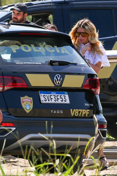 No registro feito pelos fotógrafos, Leila e Marco Aurélio aparecem sendo levados pela polícia, que impede o casal de criminosos de entrar em um jatinho. A gravação foi feita no Campos dos Afonsos, na Zona Oeste do Rio.