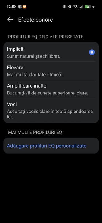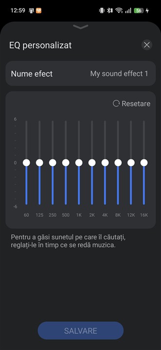 Apreciez că, spre deosebire de opțiunile de reglaj al sunetului de la HUAWEI FreeClip, la noua generație avem acum, pe lângă patru preseturi, posibilitatea de a ajusta sunetul printr-un egalizator cu 10 benzi. Totodată, poți salva propriile preseturi pe care le-ai configurat.