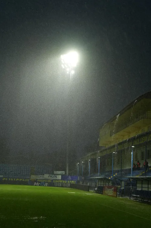 - Ploaia a îmbibat suprafața de joc, îngreunând misiunea celor două formații.