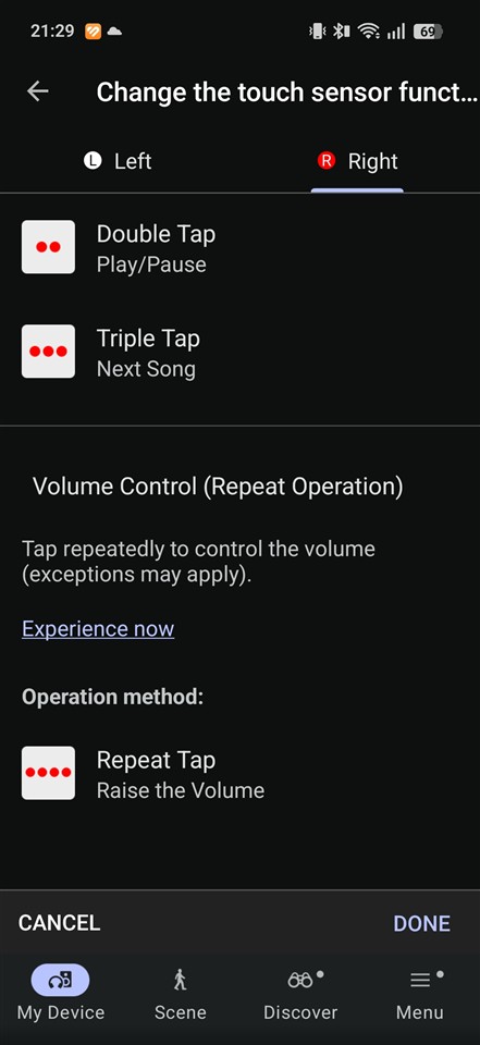 🔺 Deși de cele mai multe ori controlul volumului pe căștile de tip TWS se face prin gesturi de swipe, la Sony LinkBuds Clip poți atinge repeta de multe ori pe casca dreaptă spre a crește volumul, iar pe cea stângă spre a scădea intensitatea.