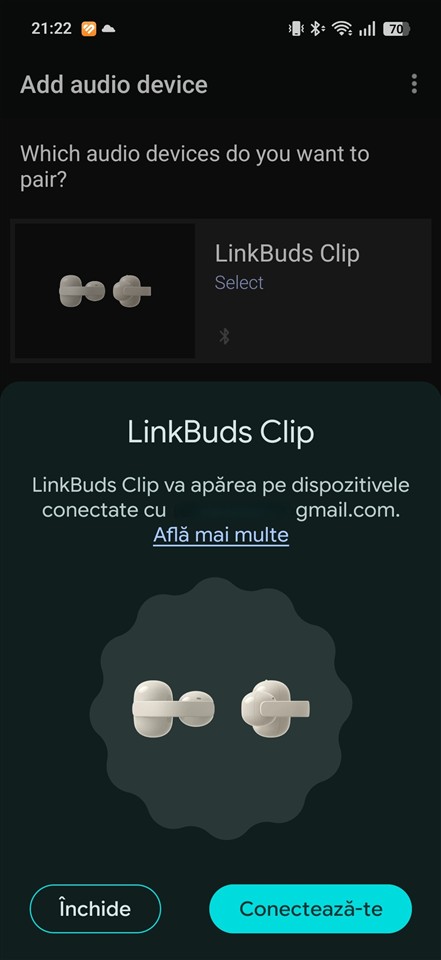 Aplicația Sony Sound Connect pentru Android cu căștile Sony LinkBuds Clip: