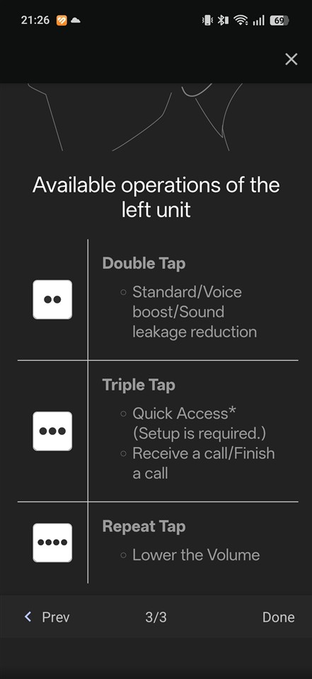 Tot la acest capitol vreau să amintesc despre posibilitatea de a controla câteva funcții (Play / Pause, Next / Previous și reglaj volum) prin atingeri ale fiecărei căști – duble, triple sau multiple.