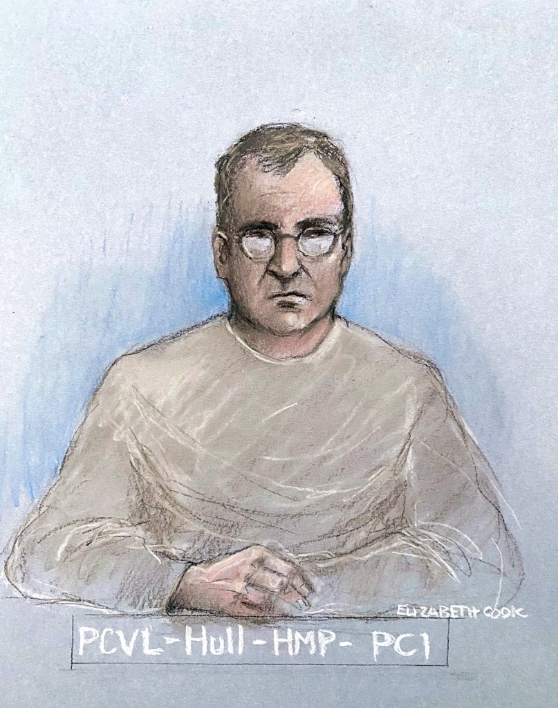 Căpitanul rus Vladimir Motin, într-o schiță făcută în timpul procesului, FOTO: Elizabeth Cook / PA Images / Profimedia