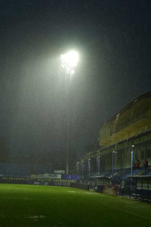 Meciul dintre Unirea și Dinamo s-a disputat pe un teren inundat de apă, după ce a plouat torențial înainte și pe parcursul partidei.