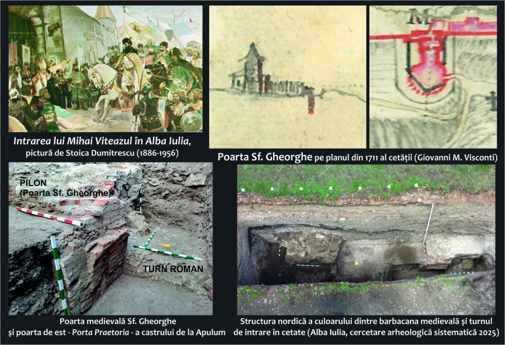 Mai exact au fost descoperite ruinele porții medievale Sf. Gheorghe, construite peste poarta principală (Porta Praetoria) a castrului legiunii a XIII-a Gemina. Descoperirea confirmă o continuitate strategică și edilitară de-a lungul a două milenii în același punct-cheie al fortificațiilor.