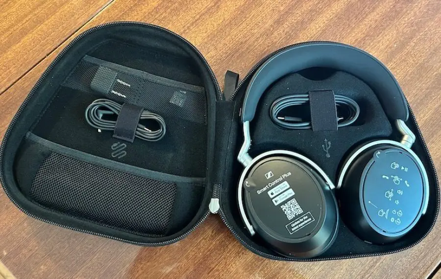 Pe partea de conectivitate, Sennheiser HDB 630 se pot conecta și prin cablu, fie prin USB-C, fie prin jack de 3,5 mm. Avantajele principale ale acestor căști țin de faptul că vin cu transmițătorul USB inclus, ceea ce rezolvă problema compatibilității și garantează accesul la calitate înaltă chiar și fără suport nativ pe telefon sau laptop.