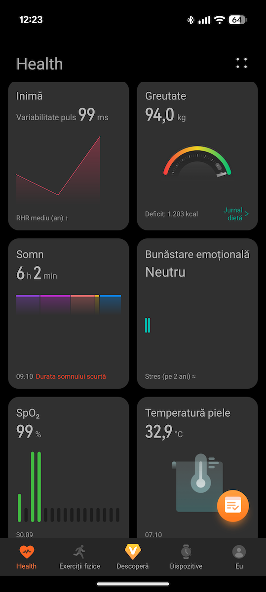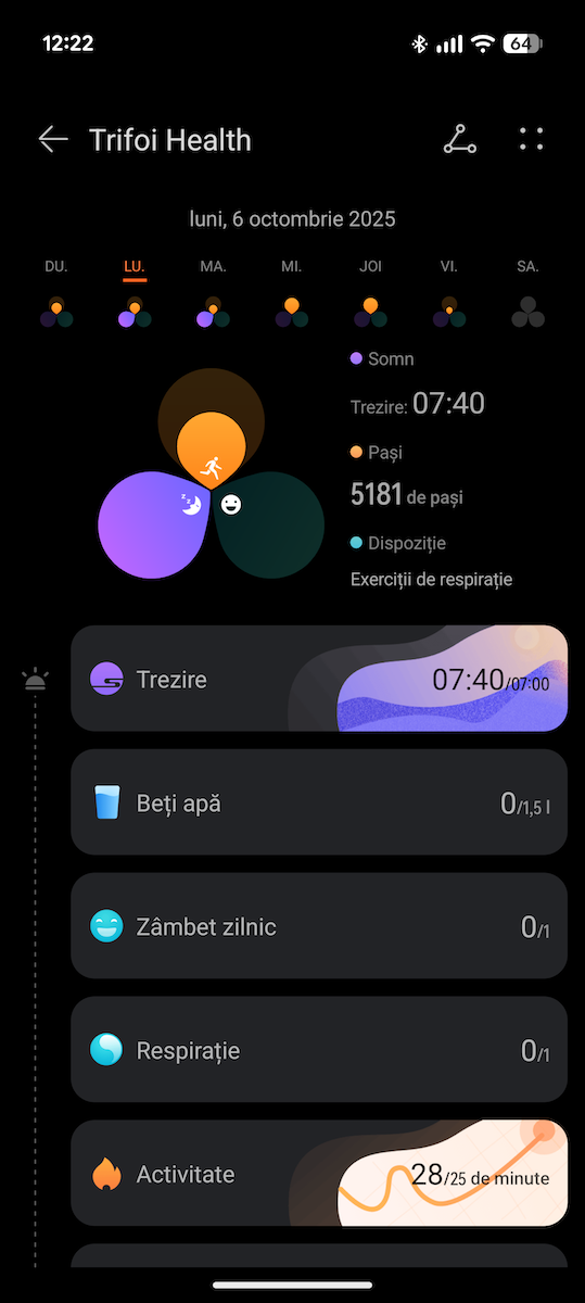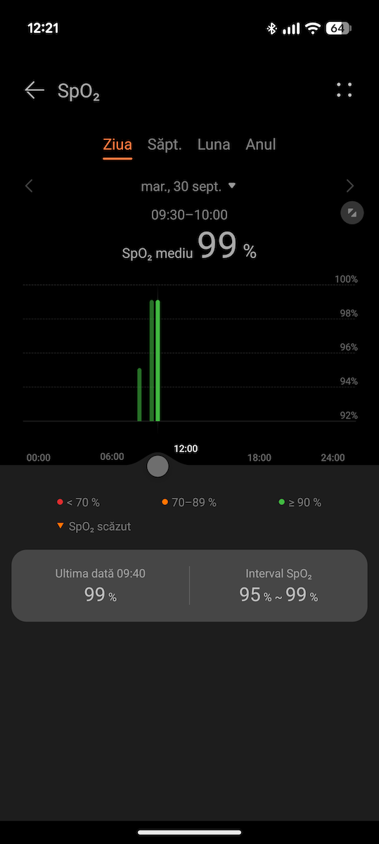 Nu am avut eSIM activ și autonomia în cazul meu a fost de până la 5 – 6 zile, am monitorizat deplasarea și înotul în bazin. Am făcut și câteva măsurători cu senzorul X-TAP.