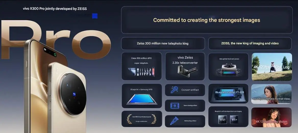 Este anunțat și un teleconvertor ZEISS pentru kit-ul foto dedicat, care atașează o lentilă externă de senzorul principal, pentru un zoom 2.35x la calitate foarte înaltă. Imaginile sunt procesare prin intermediul sistemului proprietar Blueprint, care folosește două cipuri pentru foto și video: V51 și V3+, care pot procesa fotografii și clipuri video în timp real. Pe partea video, în special, vorbim despre filmare în 4K la 120 FPS în format 10-bit Log, 4K la 60 de cadre pe secundă în modul Cinematic și 4K 120 FPS în format HDR Dolby Vision.