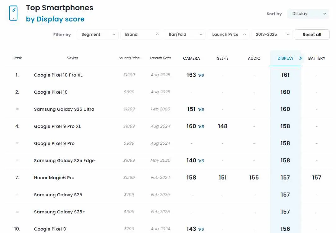 Pixel 10 Pro XL de la Google ocupă acum primul loc în clasamentul DxOMark pentru ecrane, depășind rivali precum Galaxy S25 Ultra și Honor Magic8 Pro.