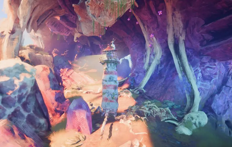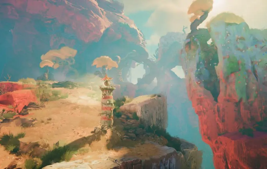 Grafica jocului este impresionantă, dar nu pentru că ar face ceva tehnic foarte avansat. La urma urmei vorbim despre un joc destul de simplu, realizat în Unreal Engine 5. Dar direcția artistică este clar inspirată de cea a tablourilor în stil suprarealist, cu culori vii și forme ciudate, inspirate din natură, în mare parte, dar întotdeauna cu un „twist”. De altfel, toate obiectele și mediile din joc au un strat de „vopsea”, lăsat parcă de o pensulă a unui pictor.