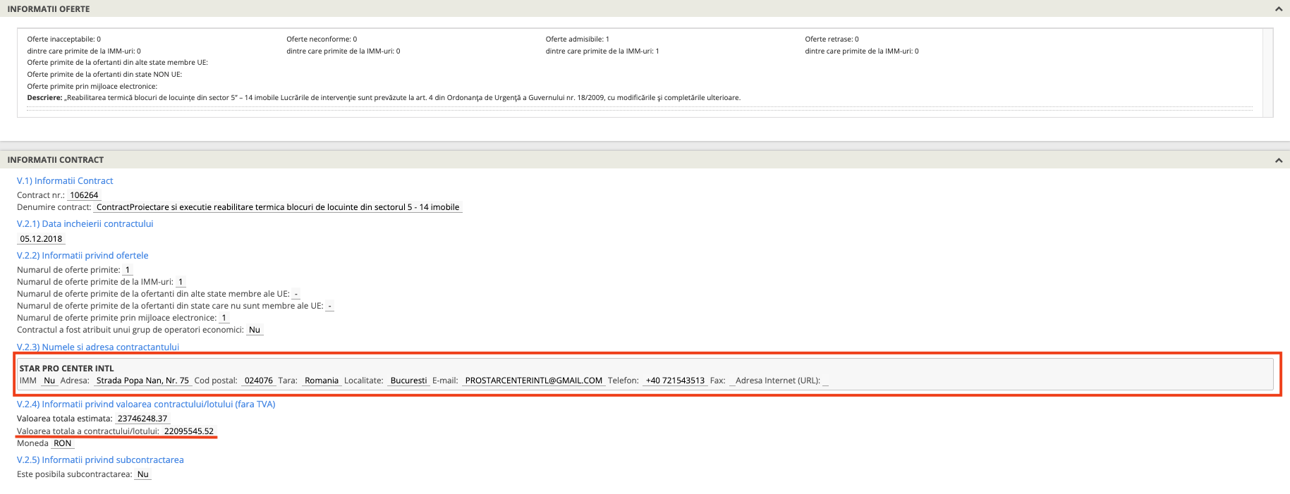 - Contractul, în valoare de peste 4 milioane de euro, prevedea reabilitarea termică a 14 imobile și a fost câștigatăde Star Pro Center INT SRL, o firmă abonată la vremea respectivă la banii Sectorului 5.