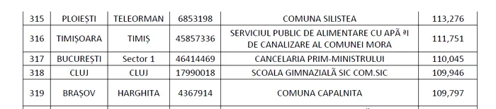 Pe listă se mai află spitale, inspectorate şcolare, şcoli, primării, cluburi sportive, instanţe şi parchete din toată ţara.