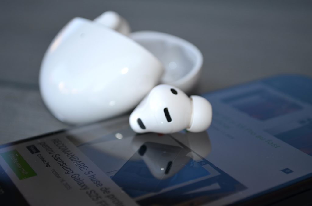 Sunt ușor de purtat în mai toate condițiile, chiar și în la sport sau în timpul somnului – le-am folosit de câteva ori în diminețile de weekend când am vrut să dorm ceva mai mult. Stau bine în ureche și am remarcat că funcțiile de control touch nu s-au activat la atingerea cu perna.