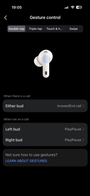Și da, puteți activa/dezactiva diferitele efecte folosindu-vă de opțiunile de touch pe căști – de la controlul nivelului de sunet, la schimbarea setărilor de ANC și până la pornirea/oprirea apelurilor și a muzicii.