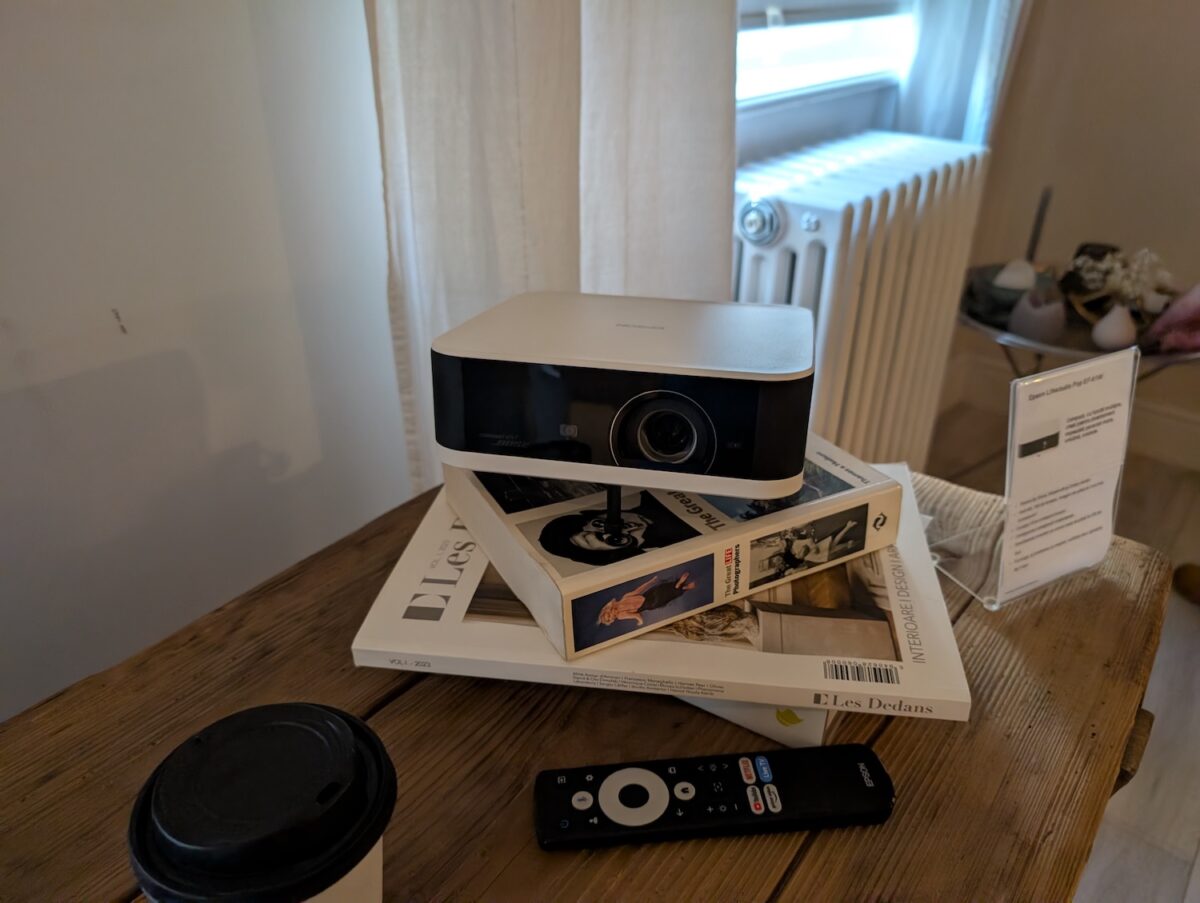 Vedete au fost proiectoarele video din gama LifeStudio, de aici și setup-ul gândit în locație. Sunt concepute pentru a fi aduse în living sau în dormitor, să fie ușor de setat și folosit, iar designul joacă și el un rol important.