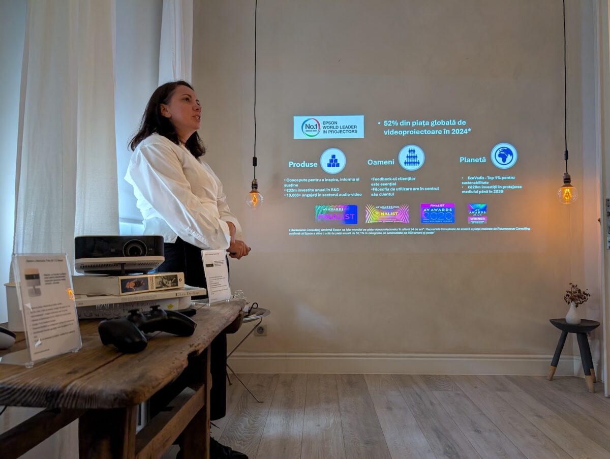 „Am imaginat acest spațiu ca o explorare senzorială: un loc unde tehnologia nu invadează, ci amplifică, iar performanța poate trăi frumos, alături de estetică. Unde un proiector sau o imprimantă devin obiecte funcționale cu rol estetic, sustenabil și creativ, adevărate extensii ale stilului de viață contemporan. La Poem Boem, am adus calitate cinematografică direct acasă – fără cabluri inutile, echipamente voluminoase sau compromisuri de imagine, iar participanții au putut vedea, auzi și simți diferența pe care o aduce combinația dintre proiecția 4K PRO-UHD și sunetul Bose calibrat special pentru aceste modele. Experiența a fost completată de o demonstrație de print creativ realizată împreună cu ilustratoarea Alexandra Cărăvan, artist specializat în design de carte și ilustrație, care a transpus prin culoare și detaliu precizia imprimantelor EcoTank într-o formă artistică.”- Alina Silvestru, Sales Manager Romania & Bulgaria.