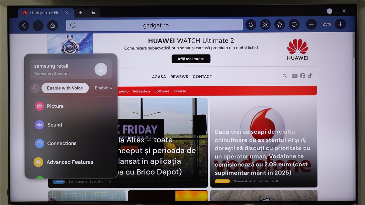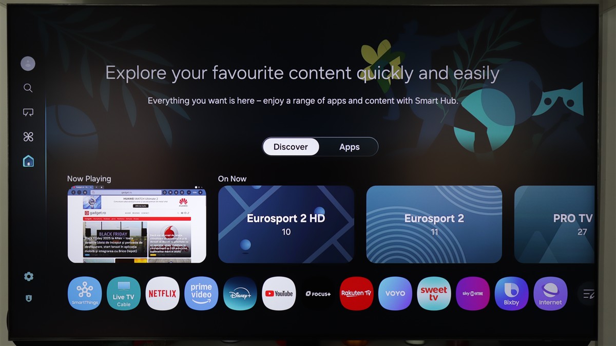 Încă o dată nu am detalii despre ansamblul hardware, dar nici nu cred că asta este cel mai important la un televizor, mult mai tare contează sistemul de operare, care în acest caz este un Tizen OS. Este bine pus la punct, este bine optimizat, este matur și plin de opțiuni, dar, în același timp, este simplu de parcurs direct din telecomandă. Și, poate cel mai importat, Tizen OS pe televizoarele Samsung va primi nu mai puțin de 7 ani de actualizări.