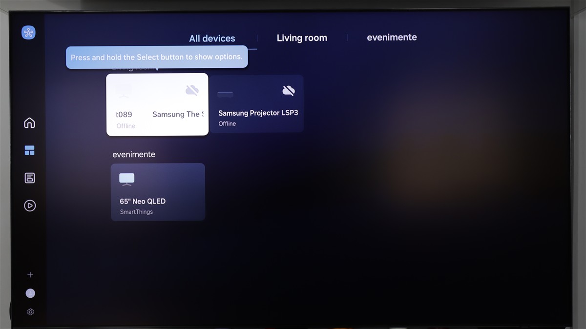 Și în cazul Samsung Neo QLED Vision AI 65QN90F trebuie să amintesc de zona Smart Things, adică acea zonă unde apar toate dispozitivele compatibile Smart Things, fie că sunt Samsung sau de la alte companii care s-au alăturat acestui ecosistem. Din televizor poți astfel să accesezi cele mai importante funcții, să configurezi întreaga casă smart, astfel televizorul devine un hub central de comandă.