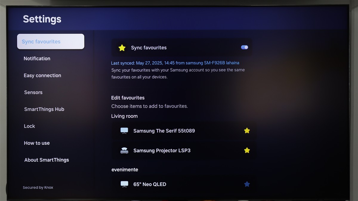 🔺Dispozitivele compatibile Samsung SmartThings pot fi controlate direct de pe acest televizor, care devine astfel un fel de hub al casei inteligente.
