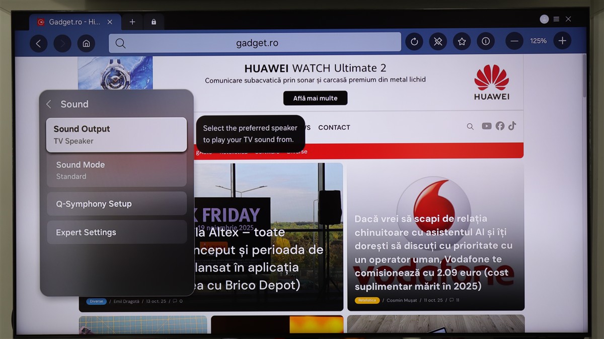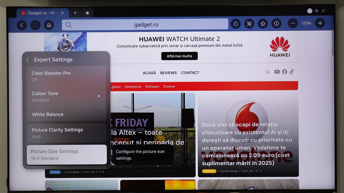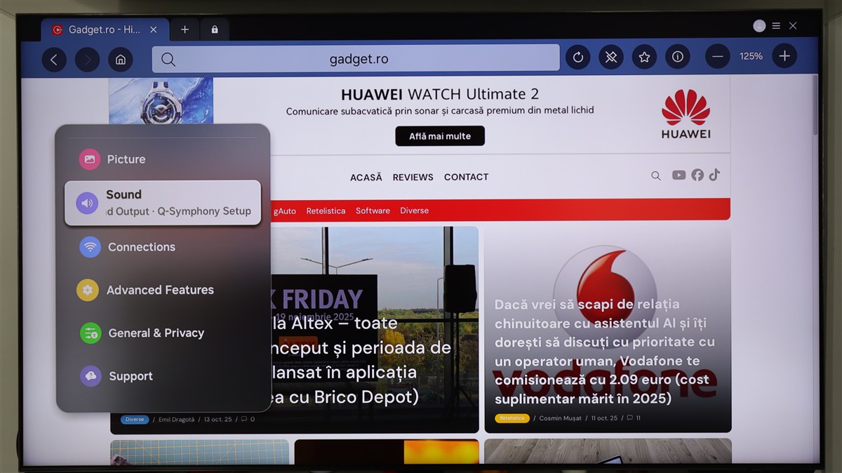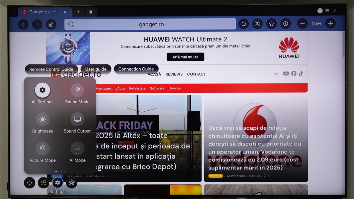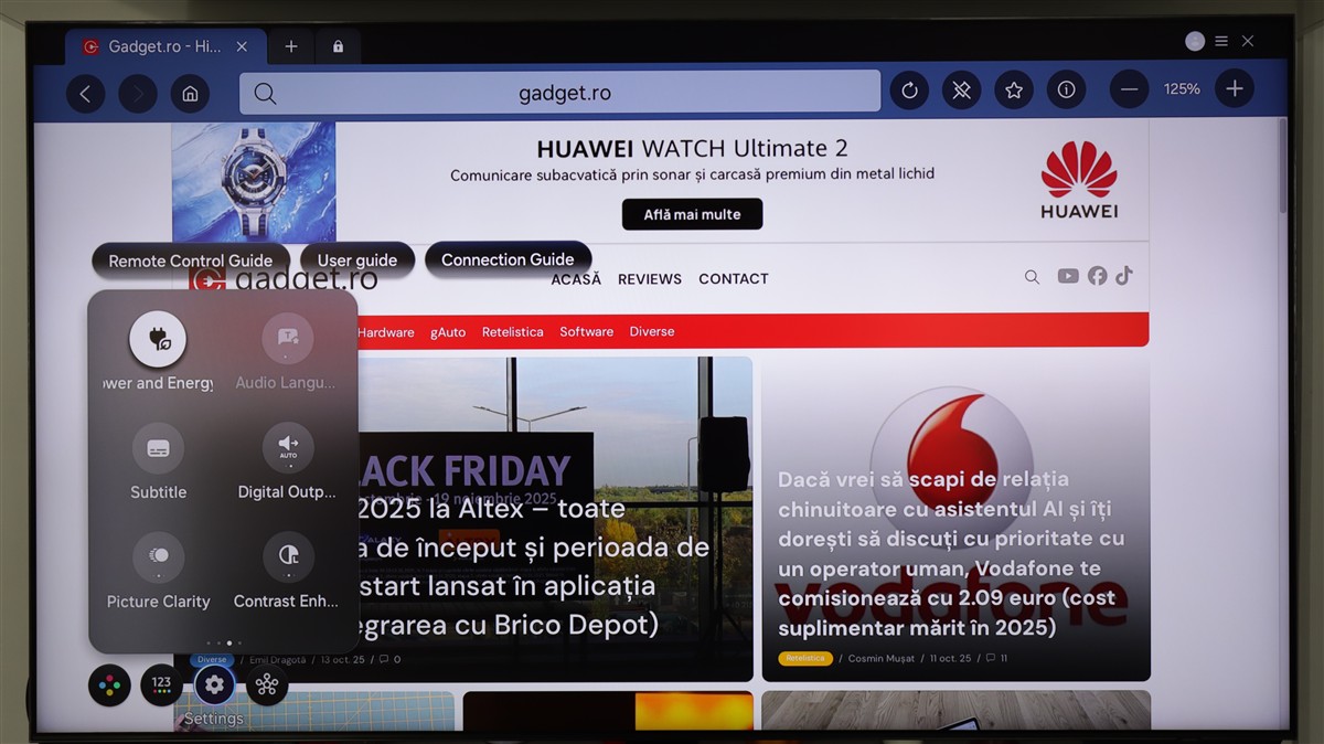 Dacă vorbim despre meniul cu setări ale televizorului, ei bine acesta este și el corect structurat, cu un meniu pentru setări rapide și cu cel principal în care nu te pierzi, în care fiecare submeniu este fix acolo unde te aștepți. Mai mult, pentru fiecare secțiune ai parte și de câteva explicații, deci înțelegi imediat ce poți regla sau activa prin acea funcție.