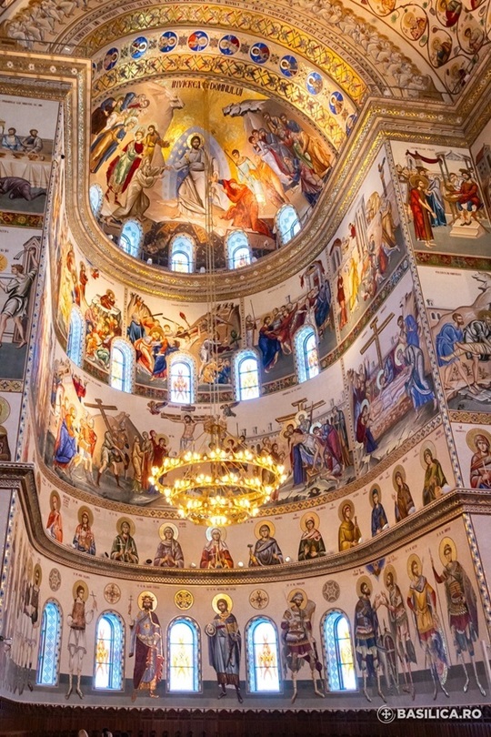 Pe pereţii catedralei sunt reprezentaţi stâlpii Ortodoxiei româneşti din toate epocile; nu în ultimul rând, anumite spaţii din interiorul catedralei sunt dedicate zugrăvirii sfinţilor mărturisitori din temniţele comuniste.