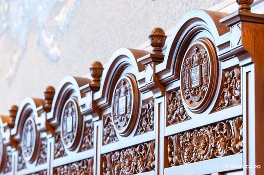 • Iconostasul – având o suprafaţă de 406,98 mp, cu o lungime de 23,8 metri şi o înălţime de 17,1 metri, cuprinde 45 de icoane, dispuse în patru registre.