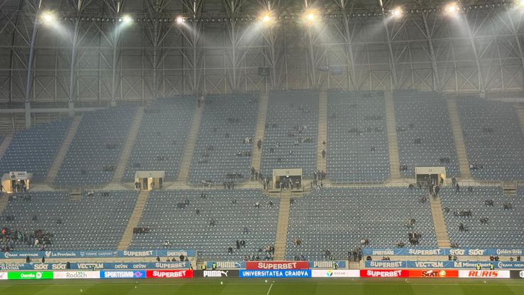 În jur de 10.000 de spectatori sunt acum în incinta stadionului, cu 30 de minute înainte de fluierul de start al partidei Craiova – Rapid, capul de afiș al rundei cu numărul 15 din Superliga