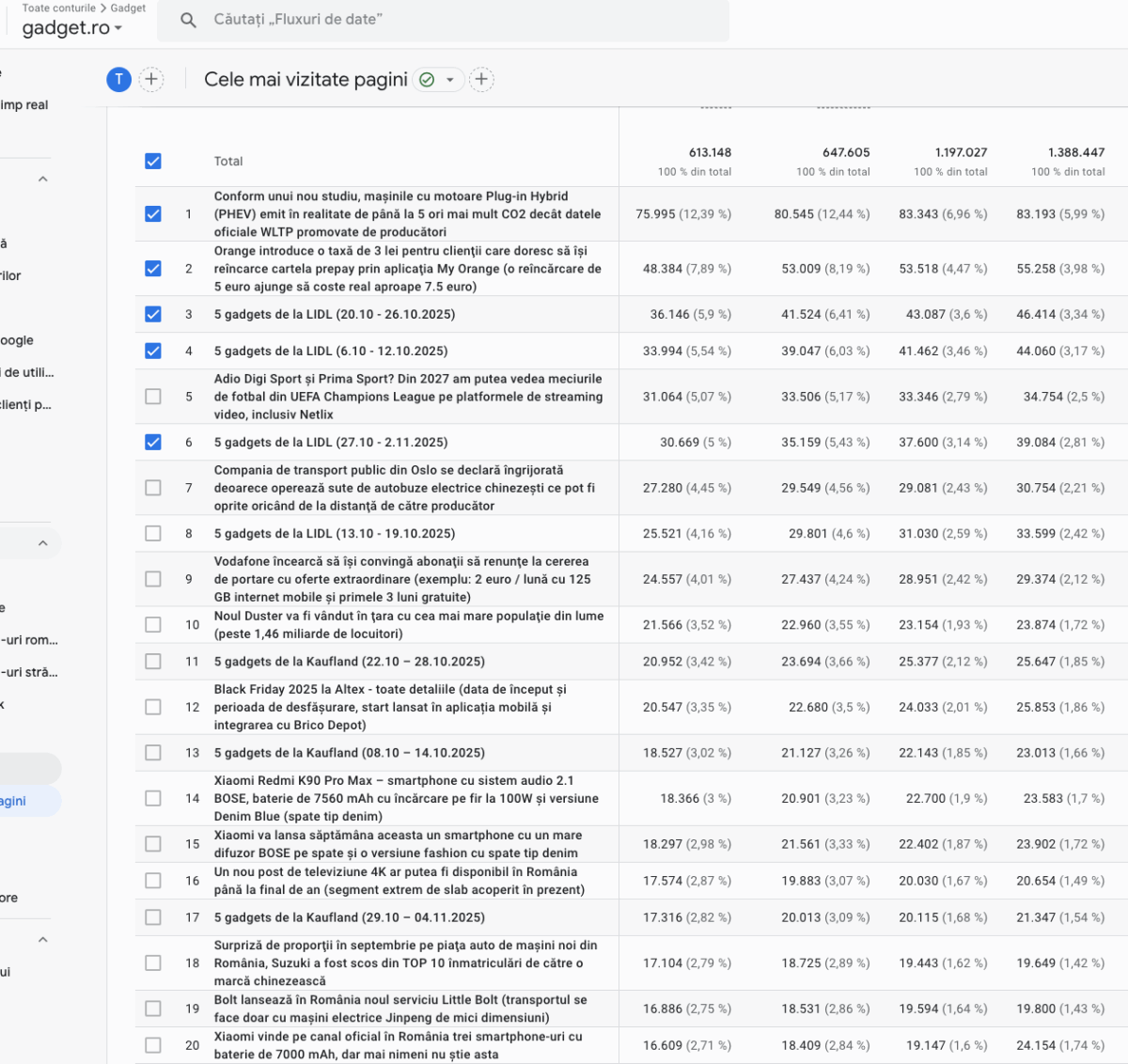 Cele mai citite articole de pe Gadget.ro în octombrie 2025 (sunt ordonate după numărul de unici, dar la date statistice am notat afișările înregistrate de fiecare articol):