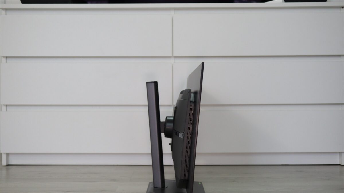 La desing singurul minus, care probabil pentru muți va fi de fapt un plus, este că nu vedem niciun element mai extravagant, ceva care să strige cumva „gaming”. Fără iluminare RGB sau ceva de genul, singurele care amintesc de faptul că avem în față un monitor de gaming fiind câteva inscripții, dar și acelea discrete. Repet, pentru unii poate că este mai bine așa, dar sunt sigur că există și doritori de iluminări RGB și alte fel de fel de „artificii” de design.