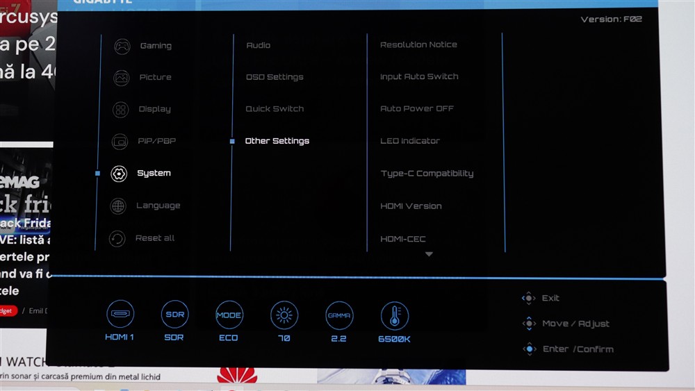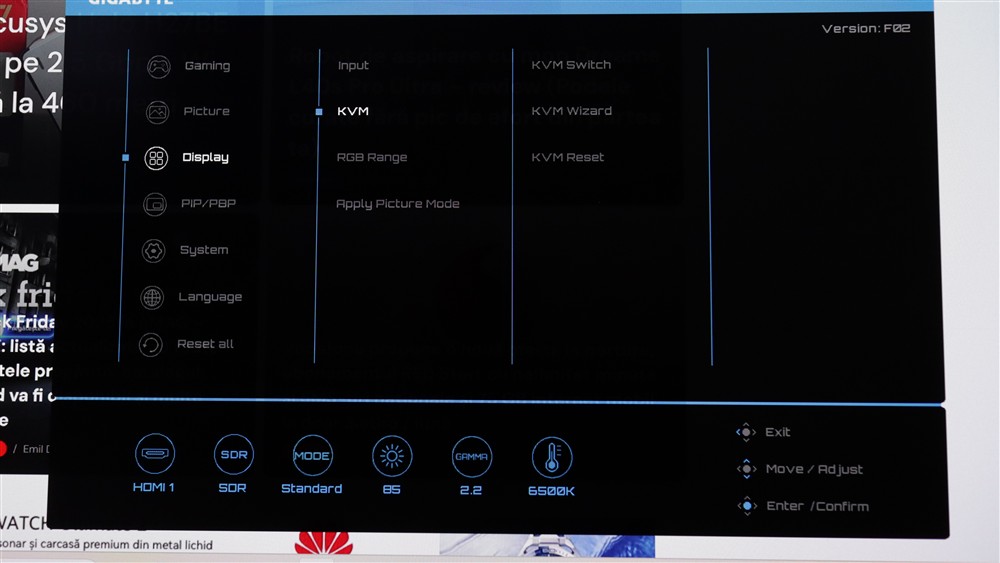 Poze cu meniul OSD de pe monitorul GIGABYTE MO27Q28G: