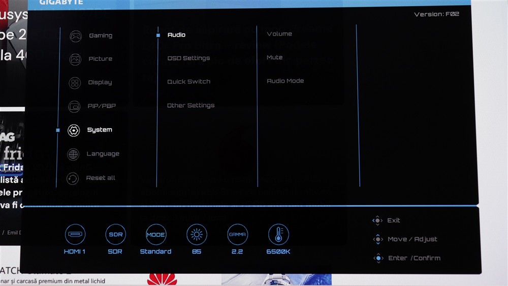 Sunetul reprodus de GIGABYTE MO27Q28G este ceva cam sec, fiindcă nu prea există bass, în schimb pe medii nu-i rău, așa că vocea este bine redată. Deci poți folosi boxele pentru ceva apeluri / conferințe video sau social media, să zicem. Volumul maxim nu mi se pare nici el de nivelul celor 10W anunțați, iar spre intensitatea maximă mai apar și ceva distorsiuni.