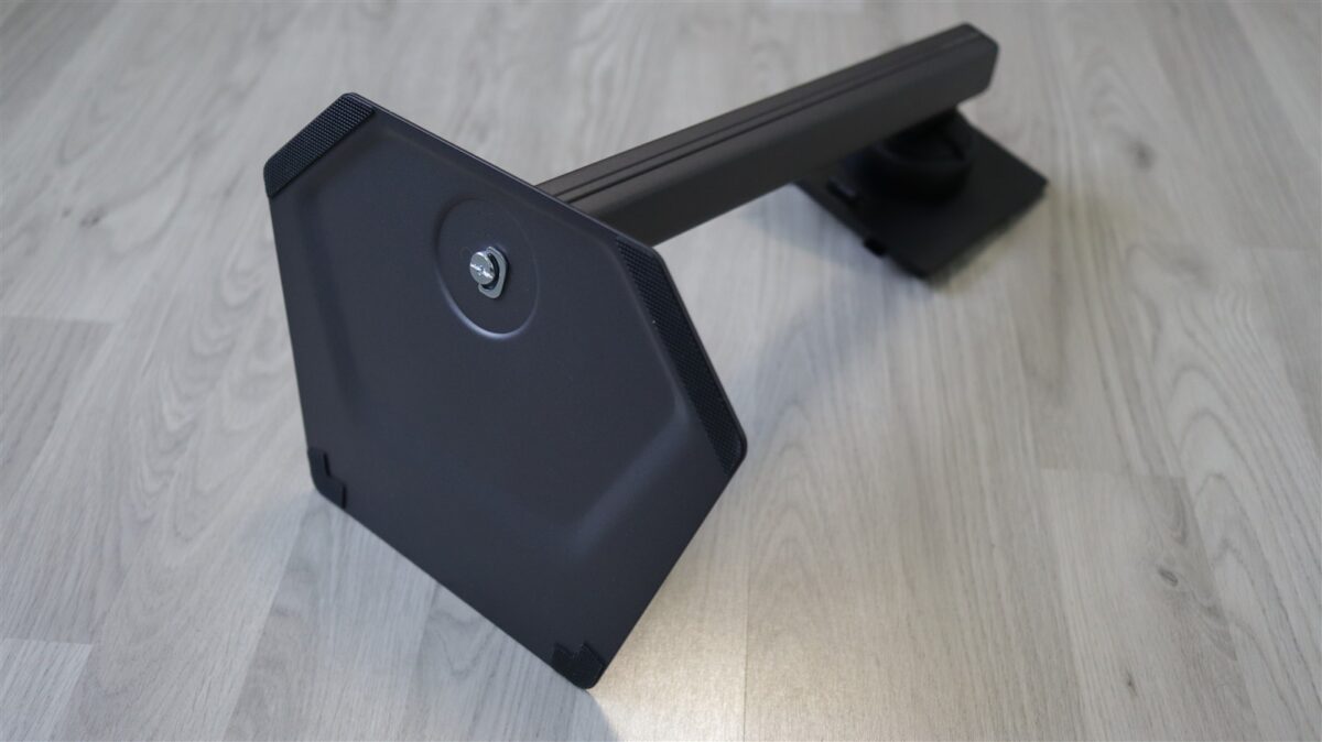 Standul este foarte simplu de montat, este nevoie să strângi doar un șurub și poți face asta cu mâna goală, pentru ca apoi acest ansamblu să se prindă de spatele monitorului printr-o clemă. Standul este solid, realizat în întregime din metal, și permite multiple reglaje pe plaje suficient de extinse.