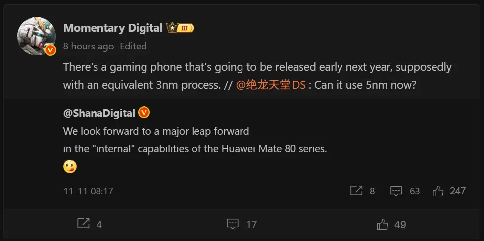 Informațiile vin de pe Weibo, iar sursa spune că noul Kirin 9030 ar putea chiar să debuteze pe presupusul telefon de gaming. Și chiar dacă nu sună rău deloc și m-aș bucura să văd un telefon cu adevărat puternic de la Huawei după mulți ani, nu sunt sigur de veridicitatea acestui zvon. Problema este că Huawei se află pe lista neagră a Statelor Unite ale Americii de mulți ani deja, iar asta limitează accesul companiei la echipamente de ultimă oră. Spre exemplu, aceștia trebuie să lucreze alături de SMIC (Semiconductor Manufacturing International Corporation) pentru dezvoltarea noului cip.