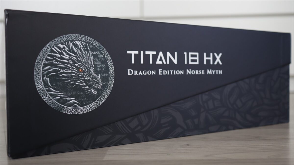 Este interesant cum MSI a reușit să transforme necesitățile inginerești (răcirea unui procesor Intel Core Ultra 9 285HX și a unei plăci video NVIDIA GeForce RTX 5090 cu 24 GB GDDR7) în elemente de design. Totul pare și este, cel mai probabil, intenționat, nimic nu a fost lăsat la voia întâmplării. Grosimea laptopului, care ar putea fi considerată pe bună dreptate un minus, aici lucrează în avantajul esteticului. Îi oferă laptopului MSI Titan 18 HX Dragon Edition Norse Myth acea prezență fizică impunătoare, care se potrivește perfect cu tematica mitologică. În mod cert nu este vorba despre un dispozitiv pe care să îl poți ascunde în rucsac…