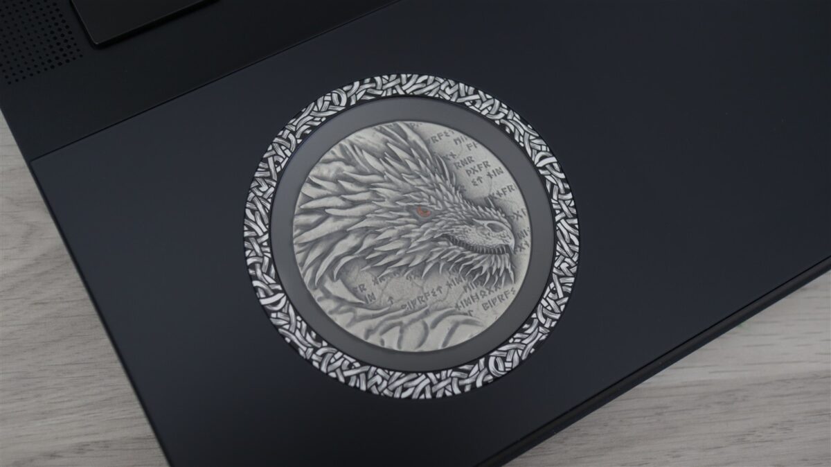 Deși nu agreez neapărat astfel de exprimări, de această dată pot spune că primul contact cu acest laptop este copleșitor. Varianta standard este masivă, grea și mare pe toate direcțiile, iar ediția Norse Myth rămâne la fel, însă te lovește vizual cu o personalitate puternică. Capacul laptopului este, fără îndoială, piesa de rezistență a întregului ansamblu.