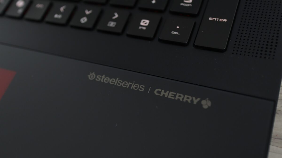 Touchpad-ul haptic rămâne și la ediția Norse Myth practic „invizibil” atunci când iluminarea RGB este oprită, fiind integrat perfect în restul palm rest-ului acoperit de o bucată continuă din sticlă.