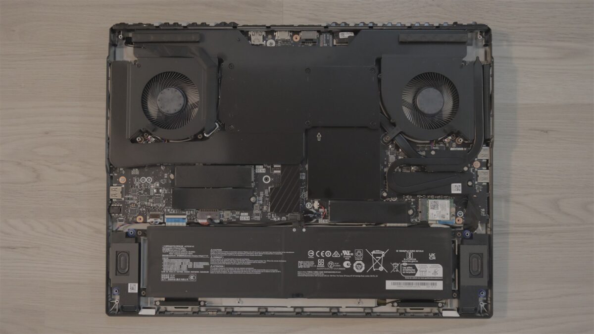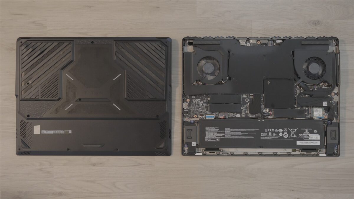Deși ai putea spune că sub o carcasă atât de masivă este loc din plin, în cazul MSI Titan 18 HX Dragon Edition Norse Myth a fost nevoie de o organizare inteligentă spre a putea fi integrate componente atât de puternice și până la 4 sloturi pentru SSD-uri. Unul dintre acestea este de tip PCIe 5.0, celelalte trei fiind de tip PCIe 4.0 x4.