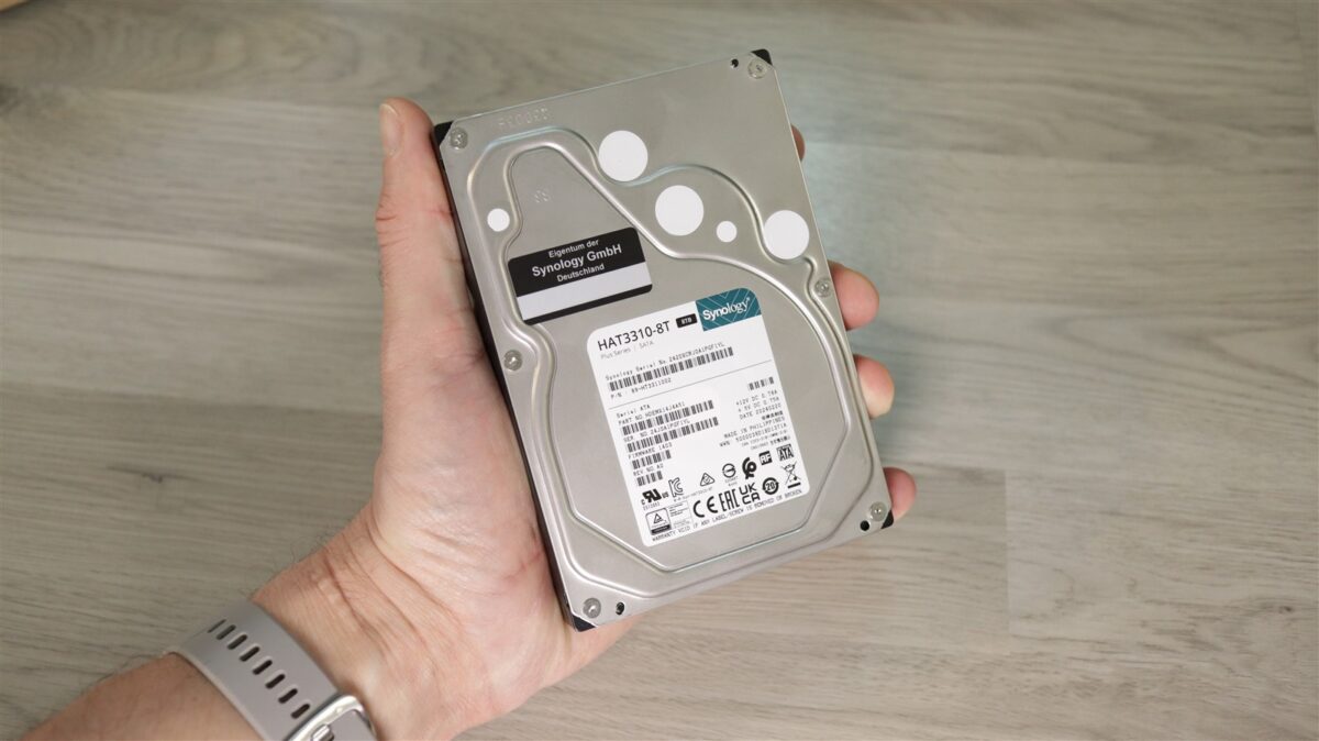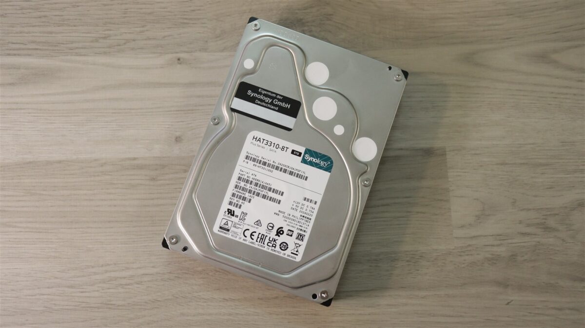 Eu primit pe lângă o unitate Synology DS225+ și două HDD-uri Synology, ambele model 3310-8T, unde ultimele două caractere se referă la capacitate, fiind vorba, evident, despre câte 8 TB.