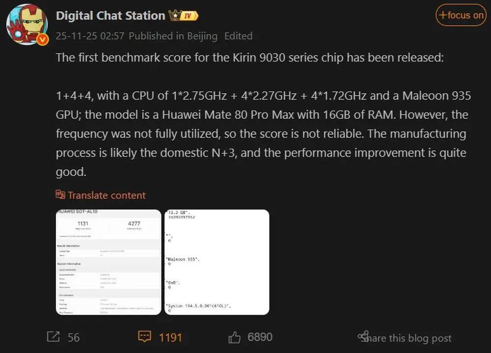 Rezultatele brute obținute în testele sintetice ar putea tempera însă entuziasmul fanilor care sperau la o concurență directă cu giganții industriei. În testul Geekbench, Kirin 9030 a obținut un scor de 1131 puncte în single-core și 4277 puncte în multi-core. Aceste cifre, deși respectabile, plasează noul cip mult în spatele soluțiilor de top oferite în prezent de Qualcomm sau MediaTek.