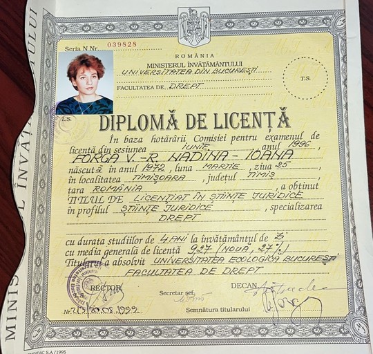 Purtătorul de cuvânt al Guvernului Ioana Dogioiu şi-a făcut publică diploma de studii, din care rezultă că a absolvit Facultatea de Drept a Universităţii Ecologice şi a susţinut examenul de licenţă la Universitatea Bucureşti.