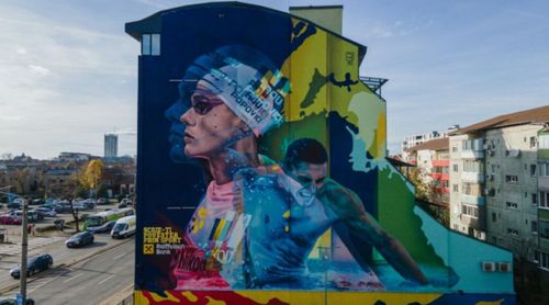 - Un mural de 400 de metri pătrați ce îl înfățișează pe campionul olimpic la înot David Popovici (21 de ani), a fost inaugurat în Timișoara.