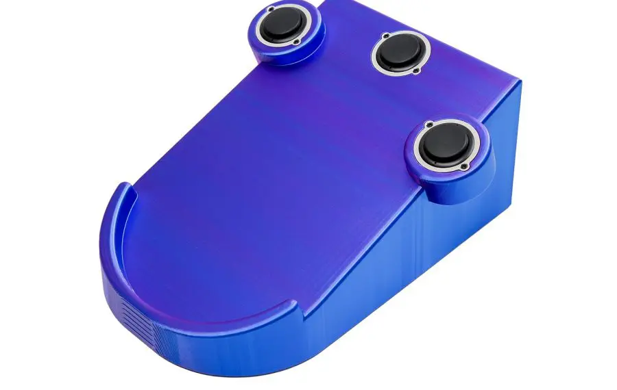 Carcasa dispozitivului este realizată dintr-un material PLA imprimat 3D, având o bază separată pentru stabilitate. Unitățile cântăresc aproximativ 1 kg, o greutate considerabilă menită să împiedice alunecarea pe podea în timpul sesiunilor intense de gaming. Tastele în sine sunt acoperite cu capace rotunde din ABS, cu un diametru de 25 mm, oferind o suprafață de contact generoasă.
